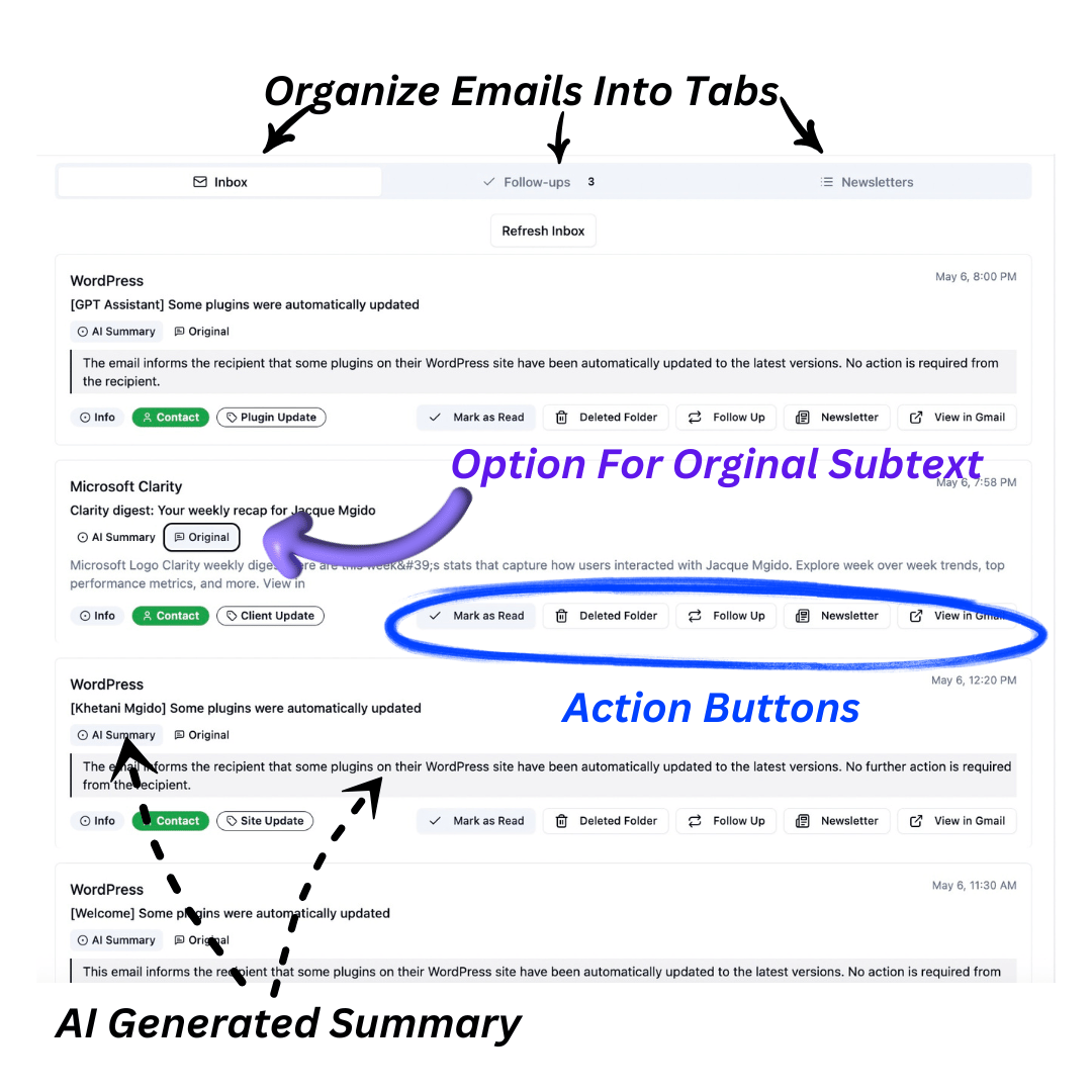 Connect with Ease: Linking your Gmail account takes seconds, and you’re immediately ready to take control of your inbox, boost your efficiency, and make your day more productive